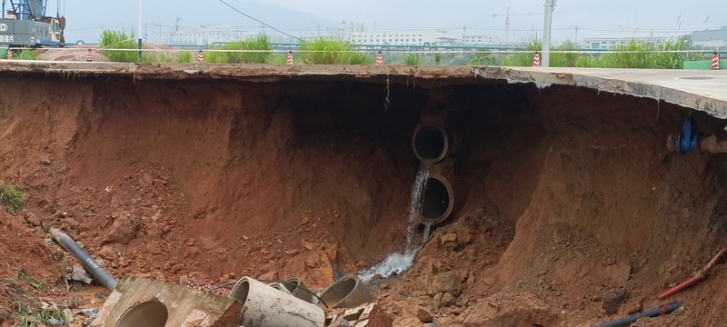 曬口街道、下沙鎮受災嚴重,供水管道排氣閥、DN150供水管道被沖毀